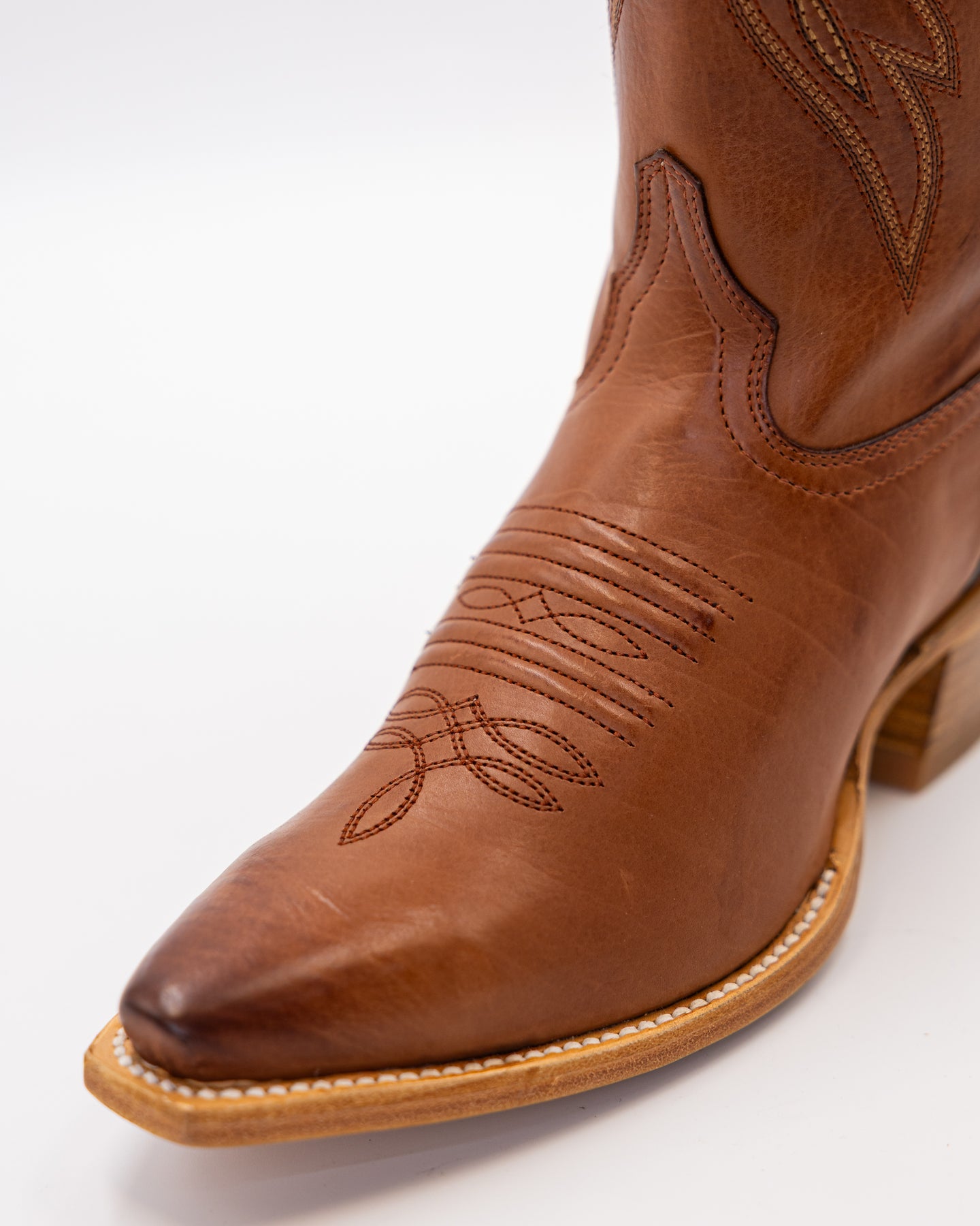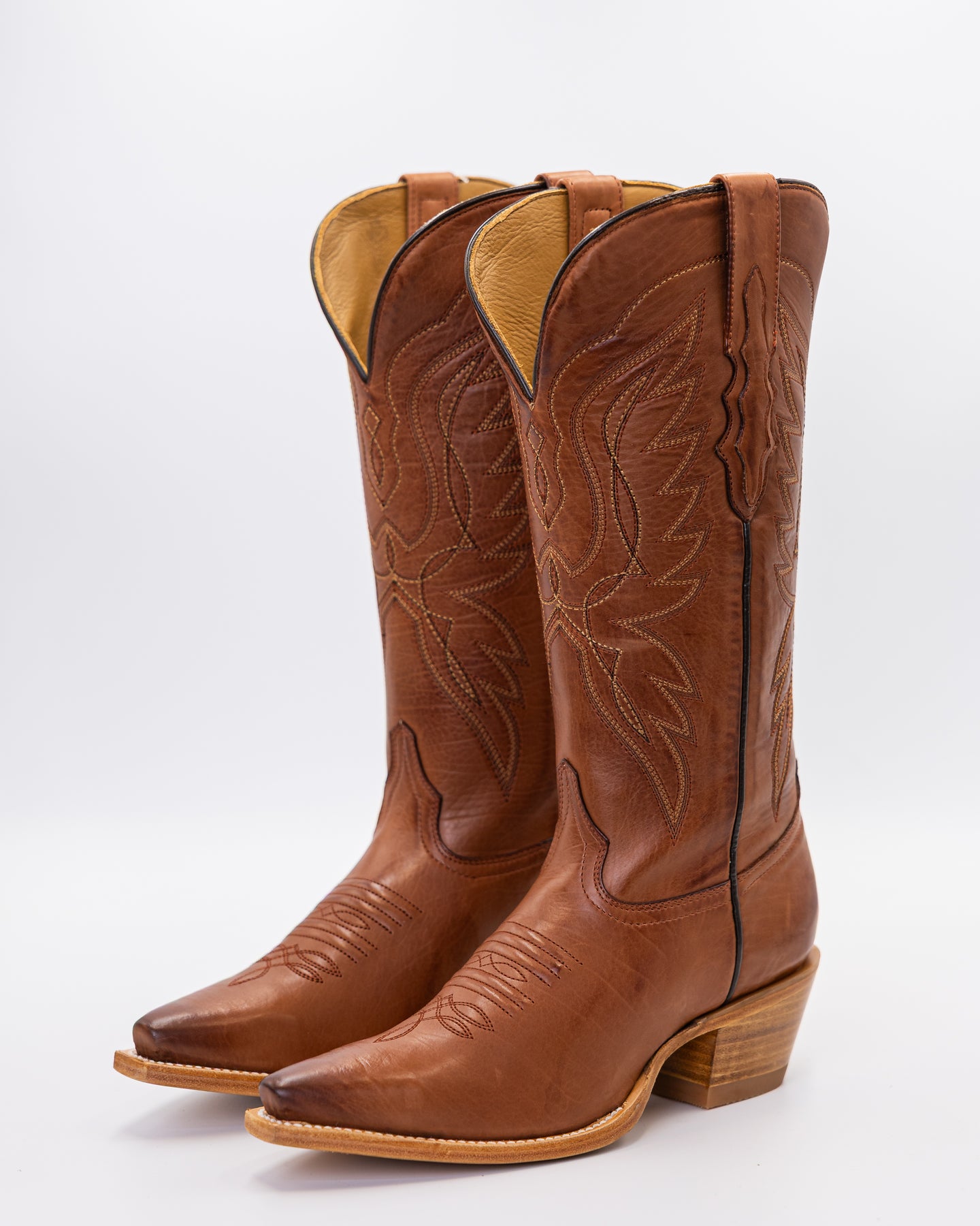 Meet the Alexia Scotch, a sleek and timeless addition to any Western wardrobe. Handcrafted from scotch leather, this boot embodies sophistication with its smooth finish and clean, minimalist look. The shaft features beige stitching, creating subtle texture and depth while maintaining a refined, monochromatic style. Confident and versatile.