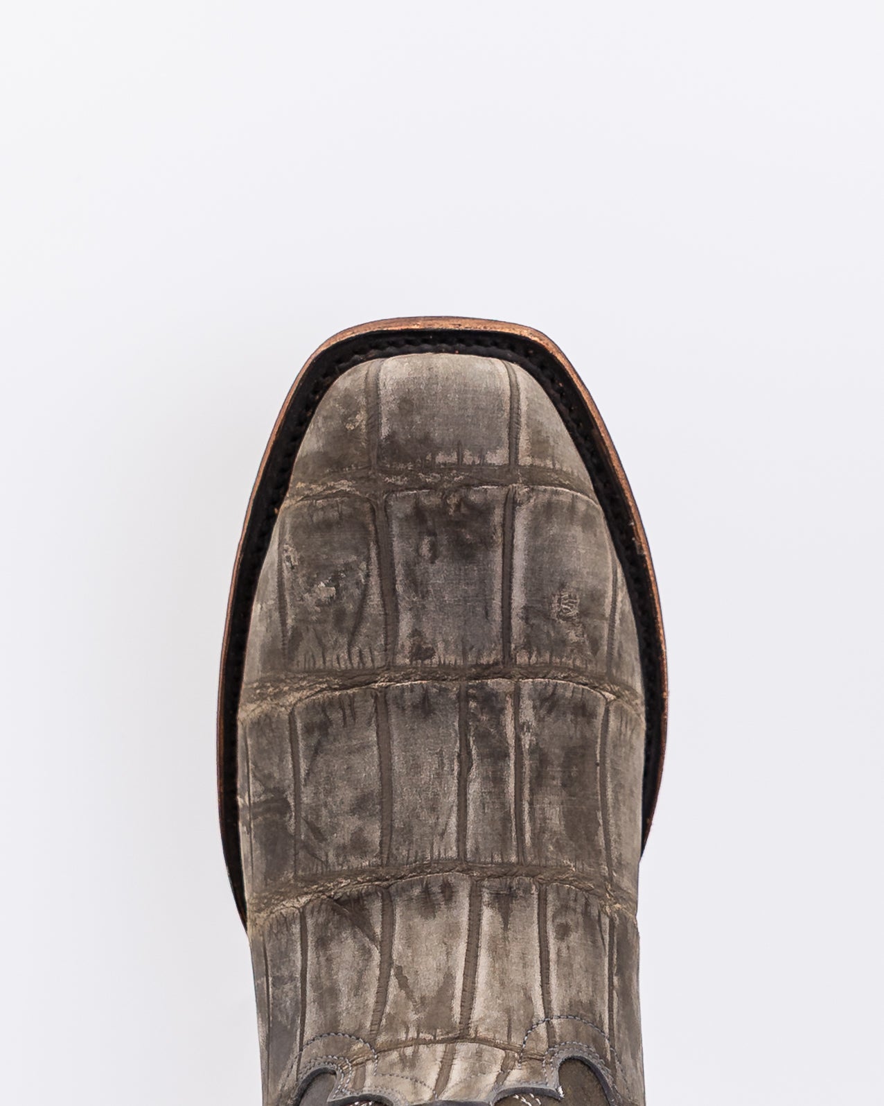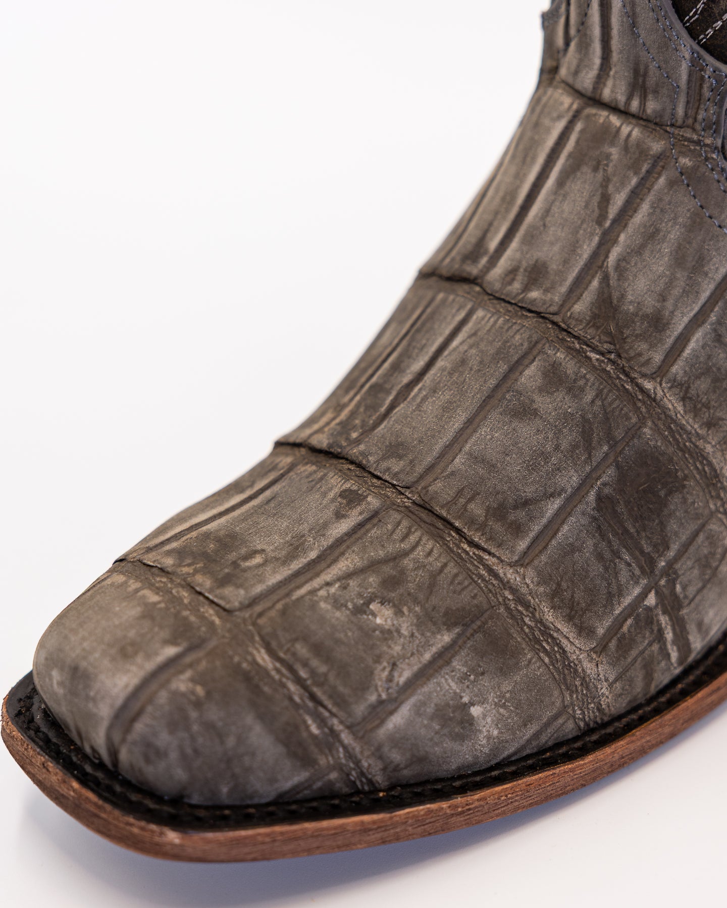 Meet the Maverick Ash, a striking blend of modern style and exotic tradition. Crafted from genuine American alligator belly skin with a refined nubuck finish, this boot comes in a unique smokey gray tone that sets it apart. The cutter toe design gives it a clean, confident profile, while the leather shaft is finished with bold Western stitching for a true cowboy look. With a sturdy leather sole and all-day comfort, the Maverick Smokey is built for those who want to make a lasting impression.