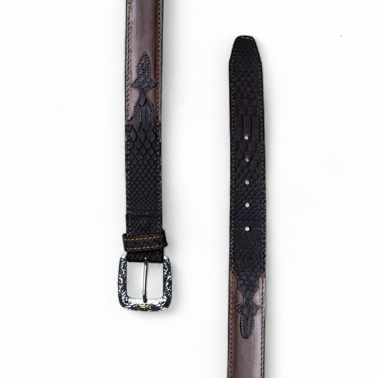 The Texas Country Python Espresso Matte Belt exudes refined western sophistication with a bold, modern touch. Crafted from genuine matte python leather, its deep espresso hue highlights the natural pattern of the scales, offering a sleek yet rugged appeal. Lined with supple calf leather for all-day comfort and flexibility, this belt is a perfect balance of luxury and durability ideal for both formal and casual western wear.