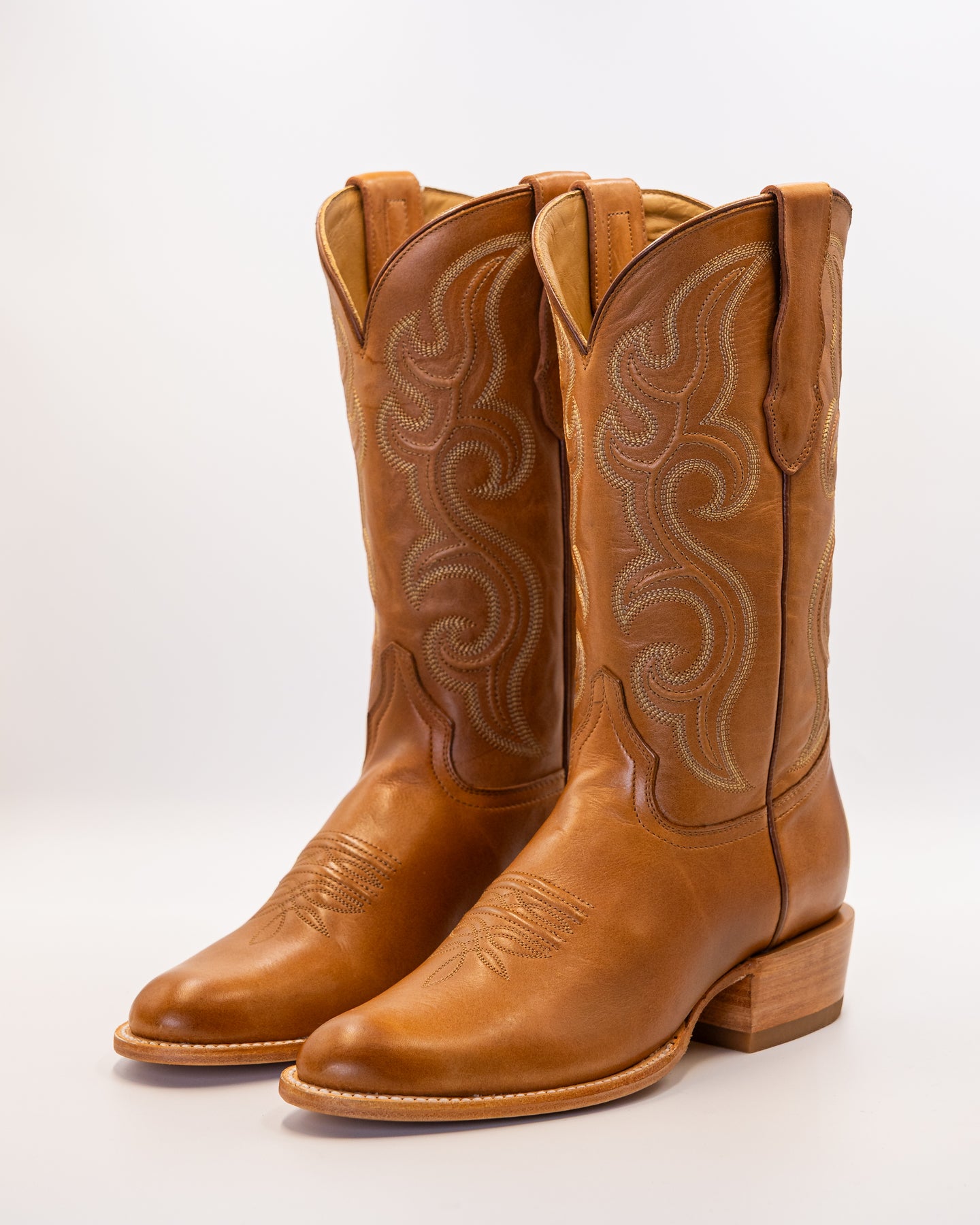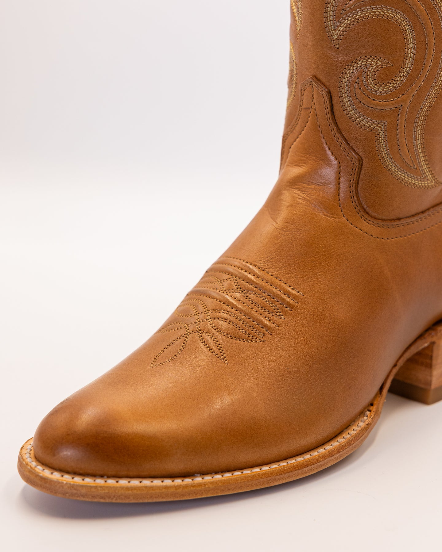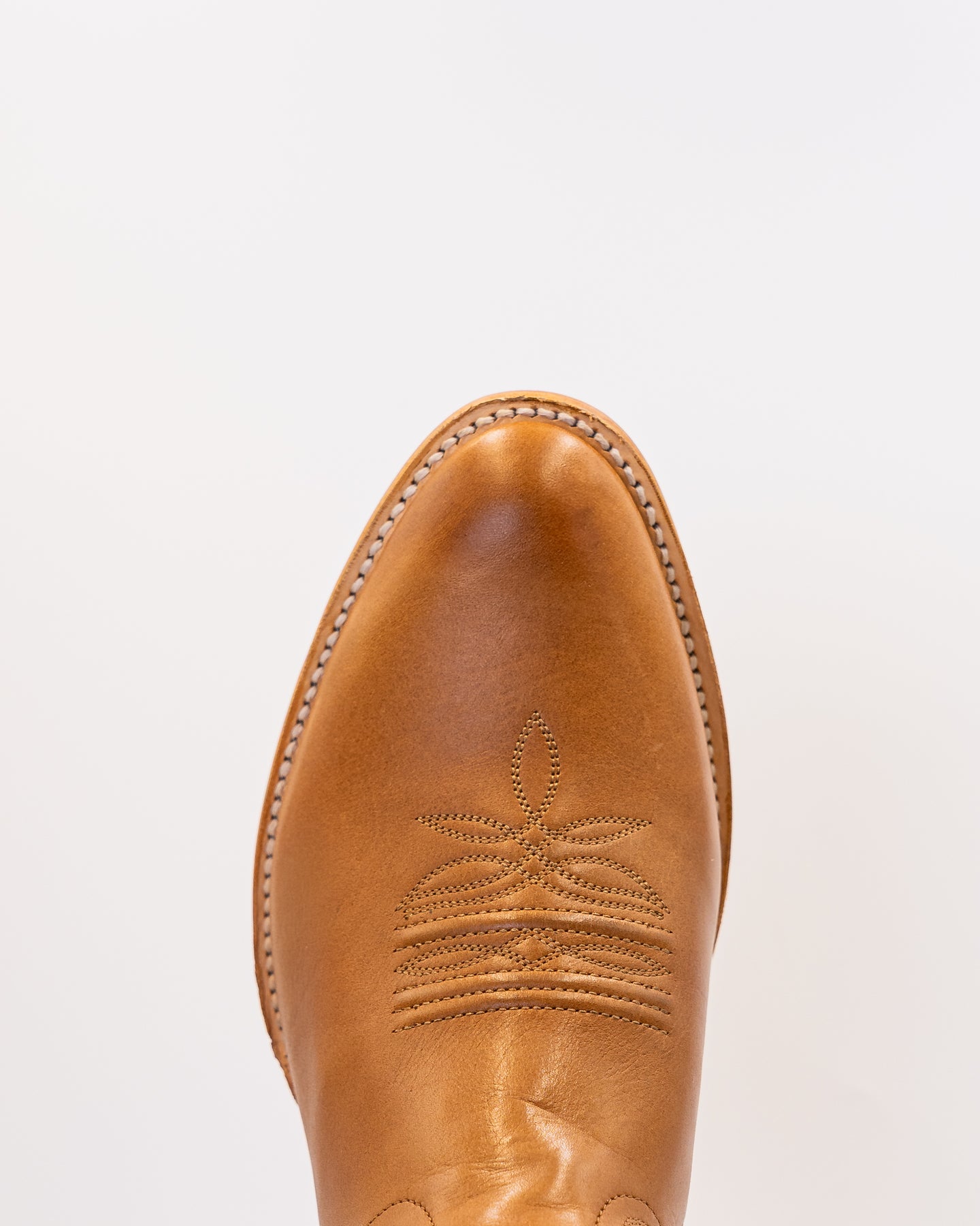 Meet the Joe camel, a timeless Western boot designed for those who appreciate classic craftsmanship and everyday versatility. Made from rich gold cowhide leather, this boot features a deep, refined tone that pairs effortlessly with any look. The light brown stitching on the shaft adds a touch of contrast and Western charm without overpowering its sleek design.