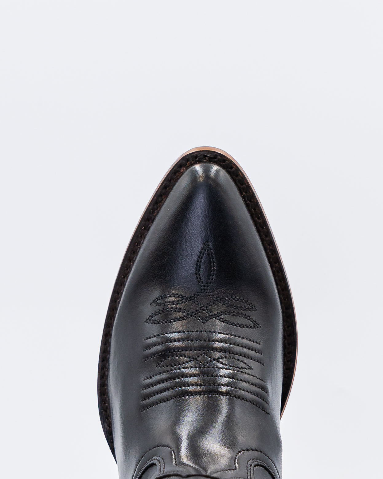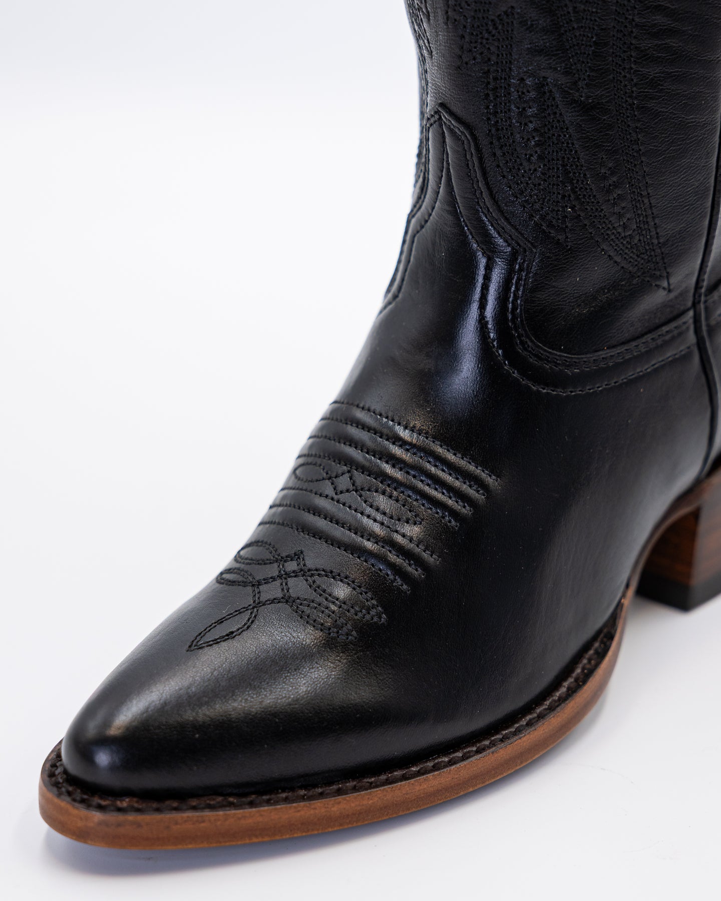 Meet the Moet Onyx, a bold statement of timeless Western elegance. Handcrafted from smooth premium leather, this boot showcases a sleek all-black design that exudes sophistication and strength. The 17-inch shaft features subtle black-on-black stitching, adding refined texture and depth to its classic silhouette. Built with a 2-inch heel and a durable leather sole, the Moet Onyx delivers both confidence and comfort in every step. Finished with a soft leather interior for a luxurious fit.