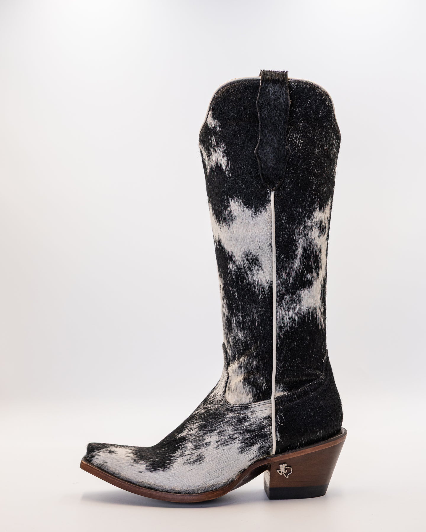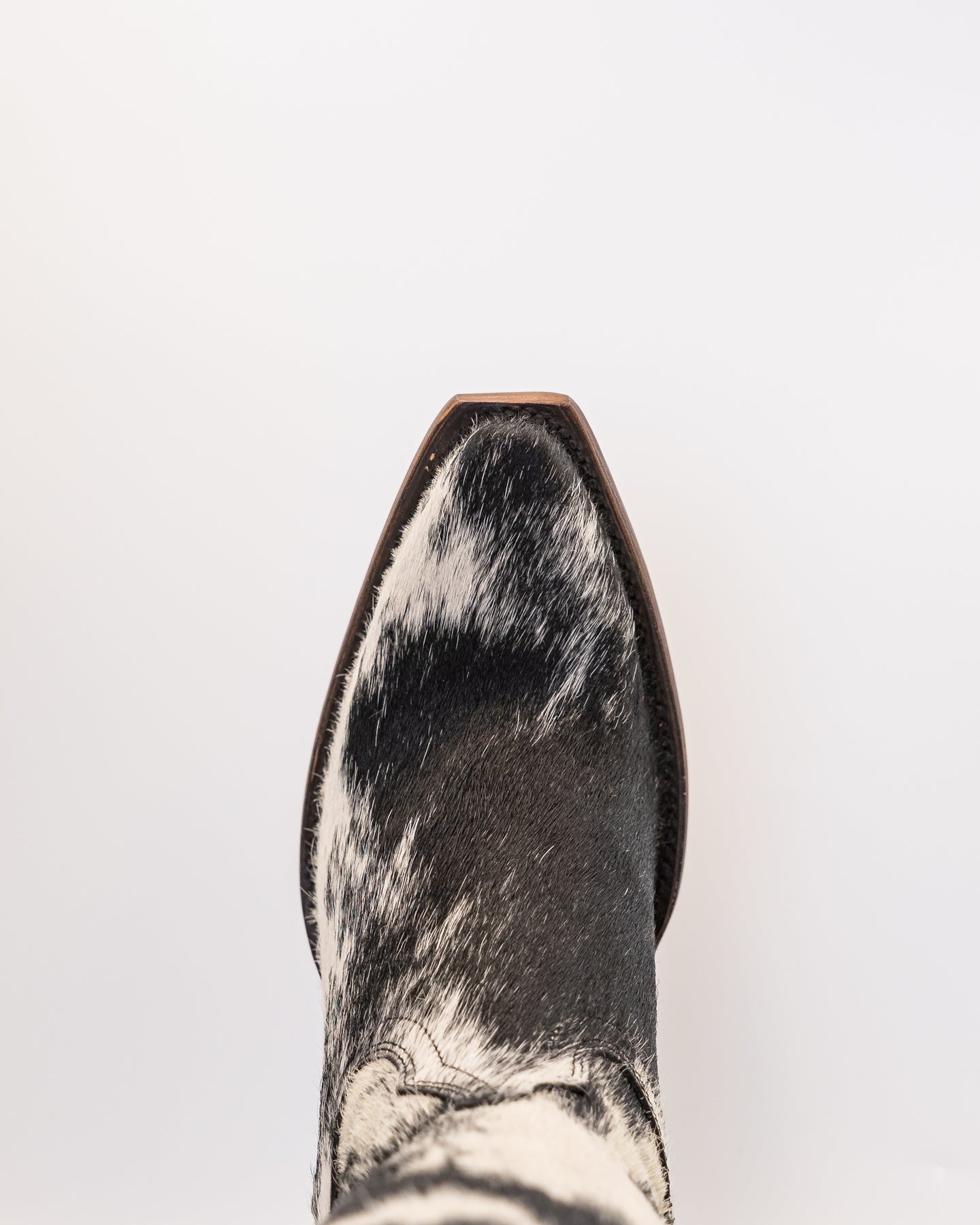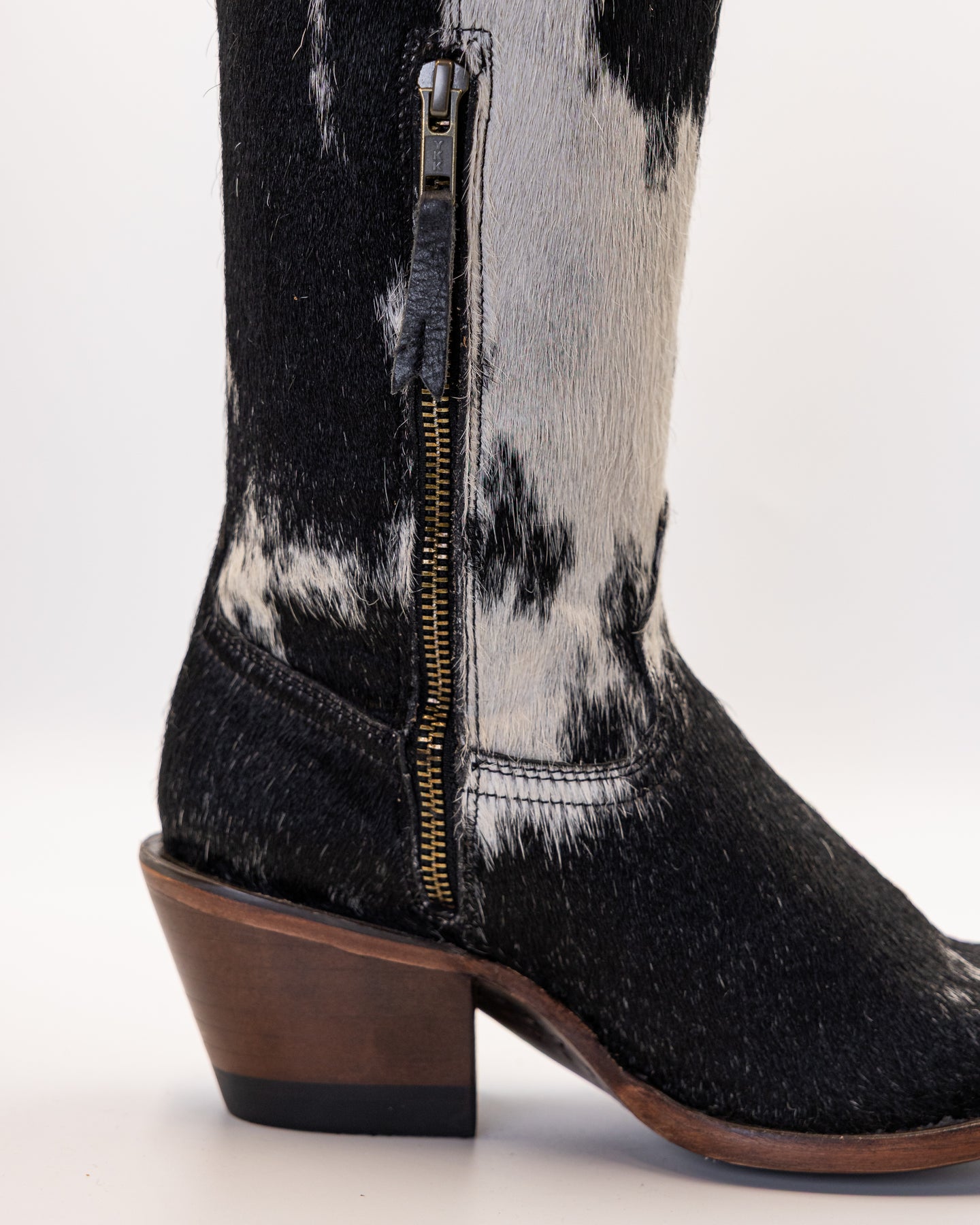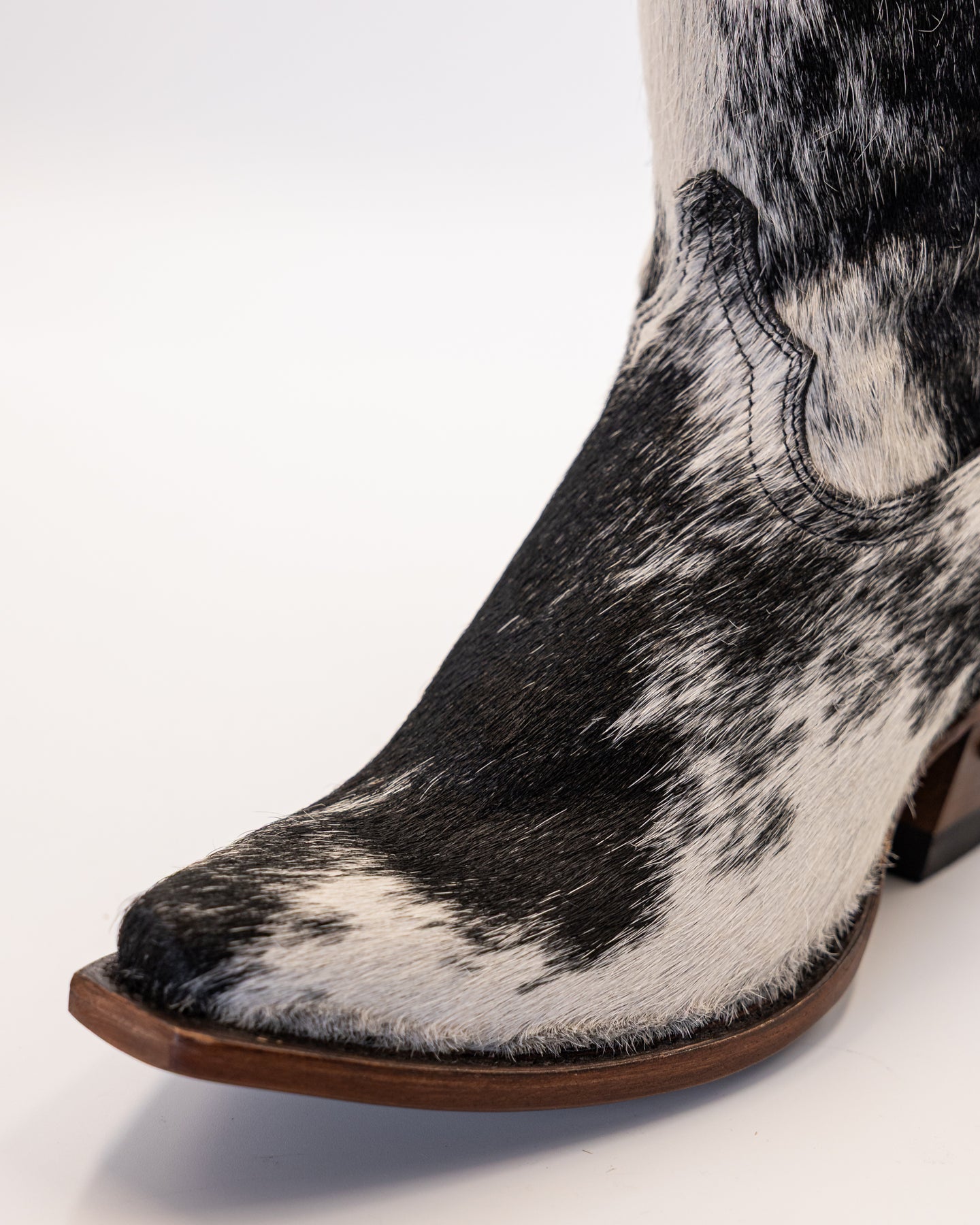 Meet the Daisy, a bold expression of Western style handcrafted from genuine cowhide leather. The striking black and white spotted hide gives each pair a unique and natural look no two are ever the same. With its soft texture and distinct patterning, the Daisy brings an authentic rustic charm to any outfit, while maintaining a refined, fashion forward edge. Perfect for those who want their boots to make a statement as original as they are.