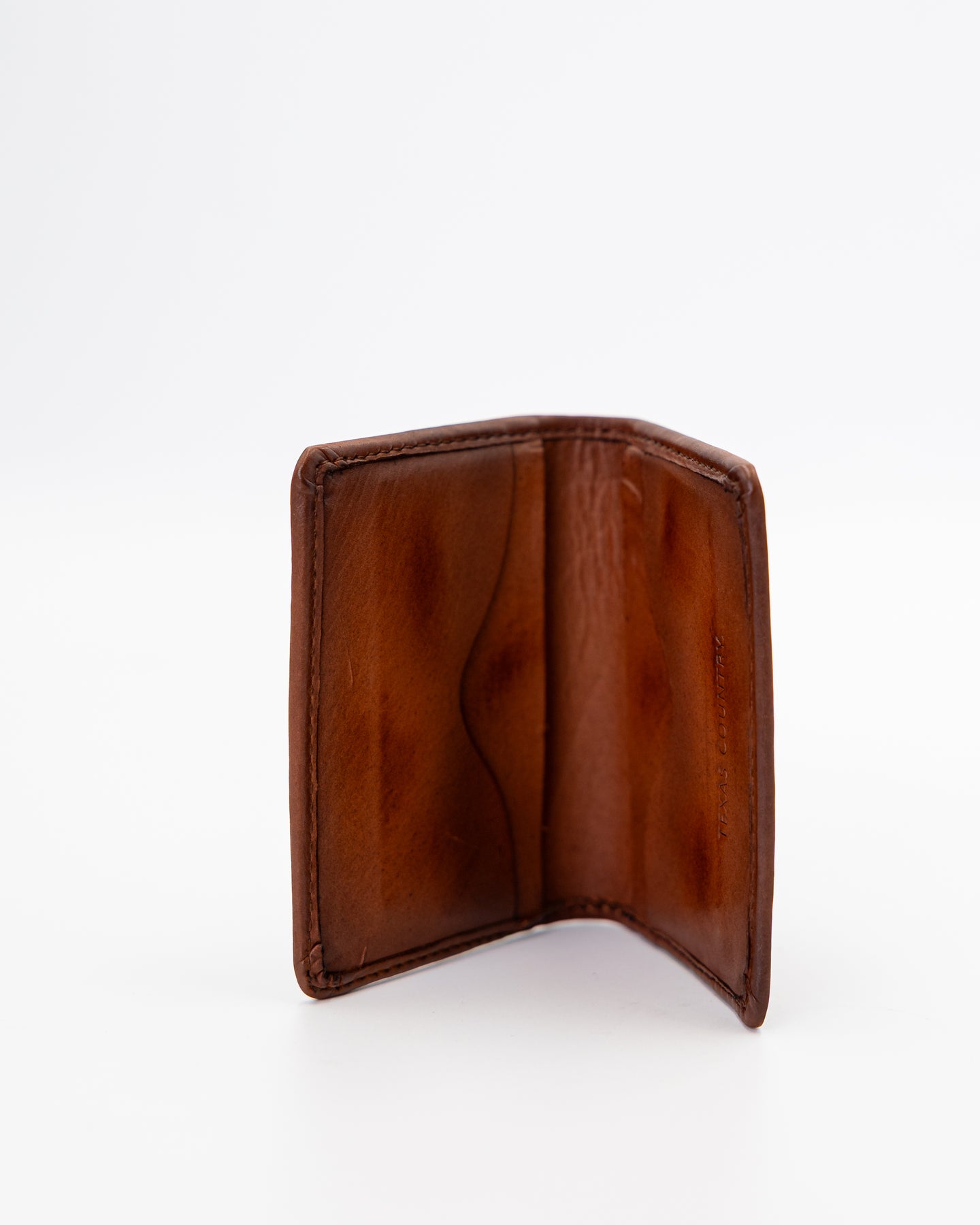 Crafted from premium cowhide leather, this Texas Country card holder combines timeless craftsmanship with everyday functionality. Its slim profile is designed for convenience, while the natural leather finish develops a beautiful patina over time. With four card slots and a central compartment for folded bills or extra cards, this piece is perfect for those who appreciate understated luxury and practicality.